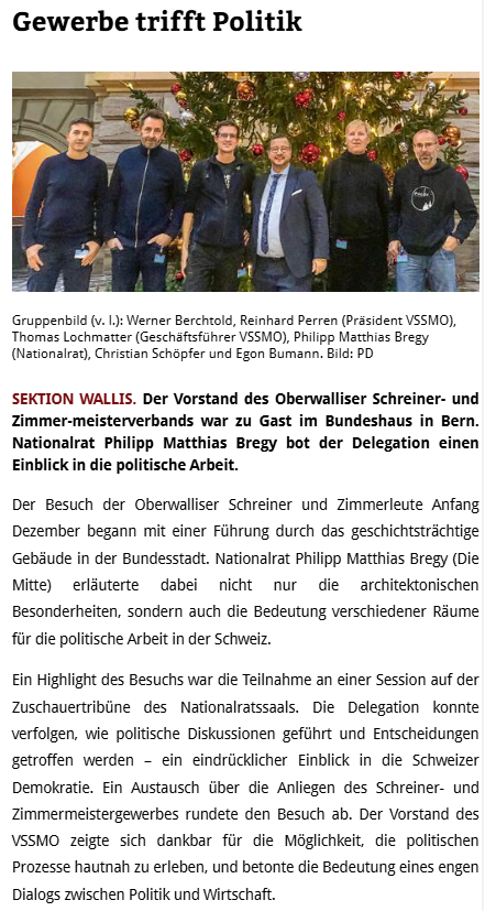 Vorstand des VSSMO trifft im Bundeshaus Nationalrat Bregy