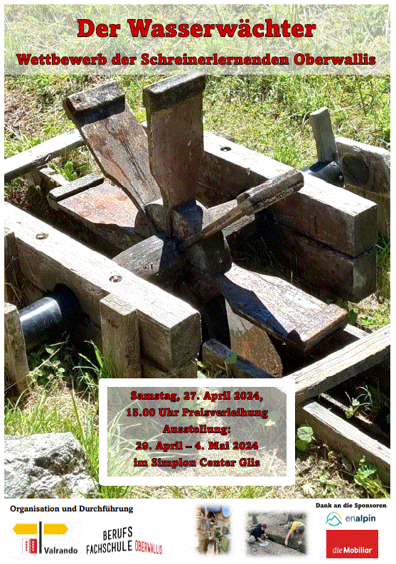 Vom 29. April bis 3. Mai 2024 findet im Simploncenter in Brig die Ausstellung der Wasserwächter der Schreinerlehrlinge statt.